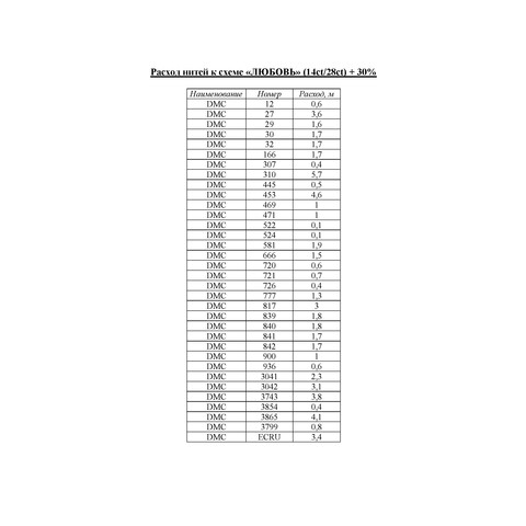 Набор ниток мулине к схеме "Любовь" Внимание! схема в состав набора не входит, схема приобретается отдельно у автора схемы