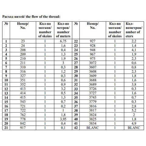 • Количество в соответствии с расходом: В наборе представлено необходимое количество нитей каждого цвета, рассчитанное на основе рекомендаций автора схемы.