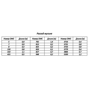• Экономия времени: Вам не нужно тратить время на поиск и подбор нужных оттенков мулине.