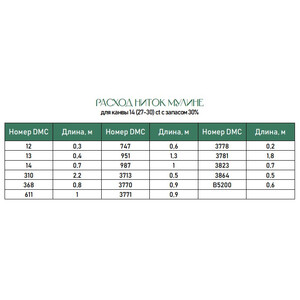 • Количество в соответствии с расходом: В наборе представлено необходимое количество нитей каждого цвета, рассчитанное на основе рекомендаций автора схемы.