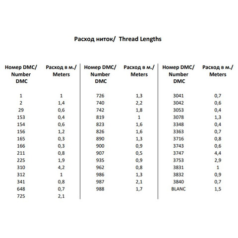 • Количество в соответствии с расходом: В наборе представлено необходимое количество нитей каждого цвета, рассчитанное на основе рекомендаций автора схемы.
