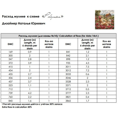 Набор ниток мулине к схеме "Рябушка" Внимание! схема в состав набора не входит, схема приобретается отдельно у автора схемы