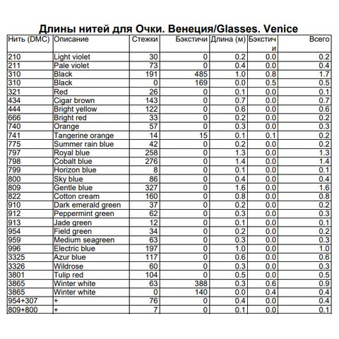 Набор ниток мулине к схеме "Очки. Венеция" Внимание! схема в состав набора не входит, схема приобретается отдельно у автора схемы