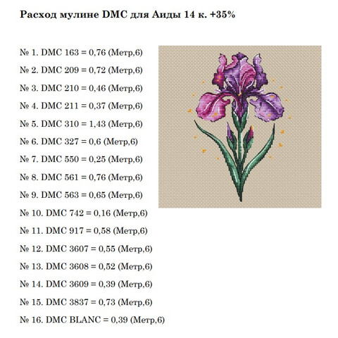 Набор ниток мулине к схеме "Ирис бородатый" Внимание! схема в состав набора не входит, схема приобретается отдельно у автора схемы