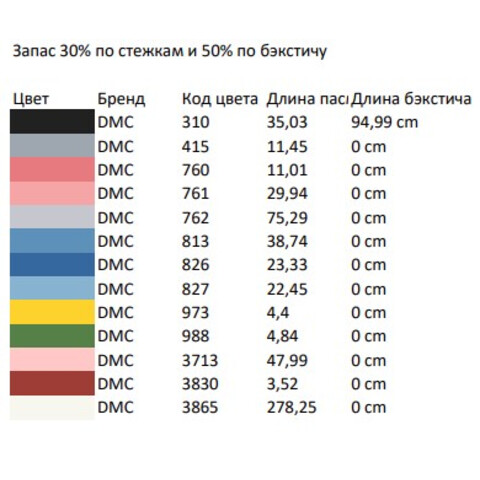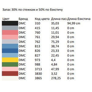 • Экономия времени: Вам не нужно тратить время на поиск и подбор нужных оттенков мулине.