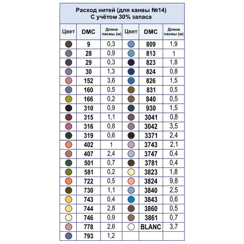 • Количество в соответствии с расходом: В наборе представлено необходимое количество нитей каждого цвета, рассчитанное на основе рекомендаций автора схемы.
