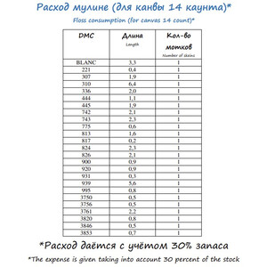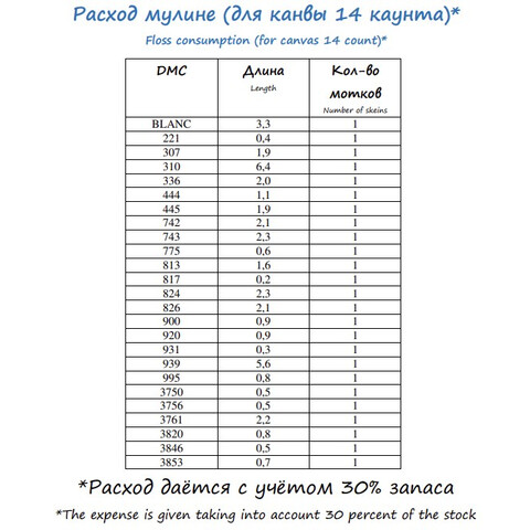• Количество в соответствии с расходом: В наборе представлено необходимое количество нитей каждого цвета, рассчитанное на основе рекомендаций автора схемы.