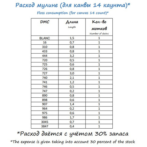 • Количество в соответствии с расходом: В наборе представлено необходимое количество нитей каждого цвета, рассчитанное на основе рекомендаций автора схемы.