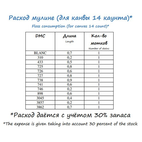 • Количество в соответствии с расходом: В наборе представлено необходимое количество нитей каждого цвета, рассчитанное на основе рекомендаций автора схемы.