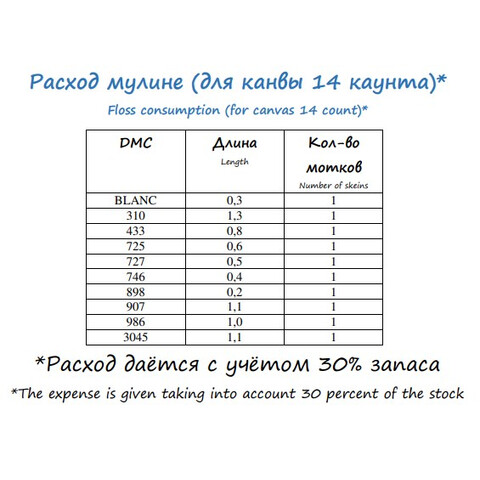 • Количество в соответствии с расходом: В наборе представлено необходимое количество нитей каждого цвета, рассчитанное на основе рекомендаций автора схемы.