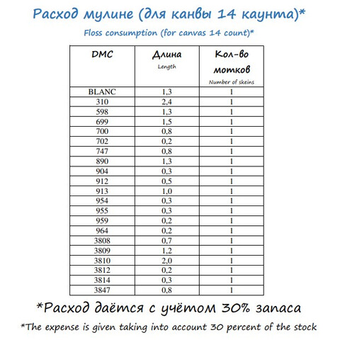 • Количество в соответствии с расходом: В наборе представлено необходимое количество нитей каждого цвета, рассчитанное на основе рекомендаций автора схемы.