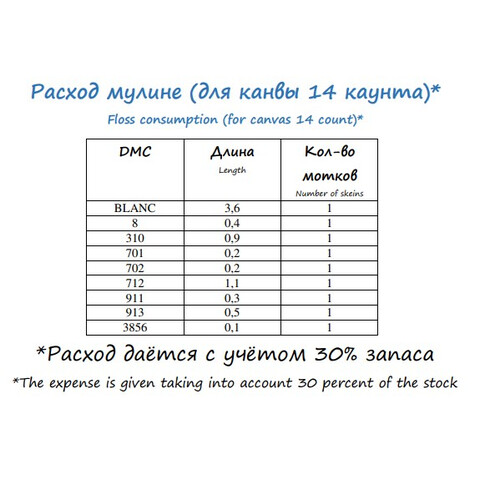 • Количество в соответствии с расходом: В наборе представлено необходимое количество нитей каждого цвета, рассчитанное на основе рекомендаций автора схемы.