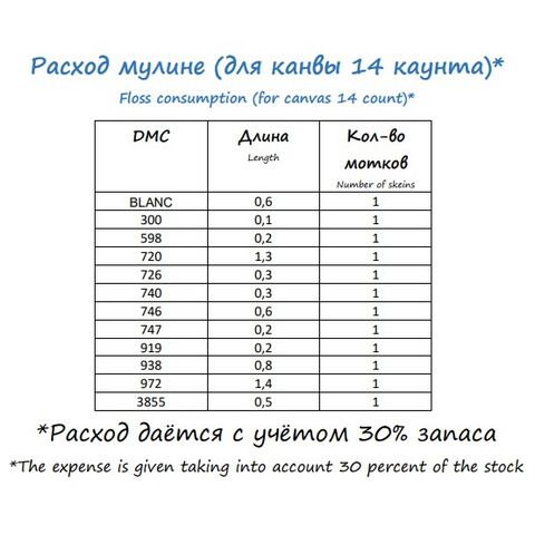 • Количество в соответствии с расходом: В наборе представлено необходимое количество нитей каждого цвета, рассчитанное на основе рекомендаций автора схемы.