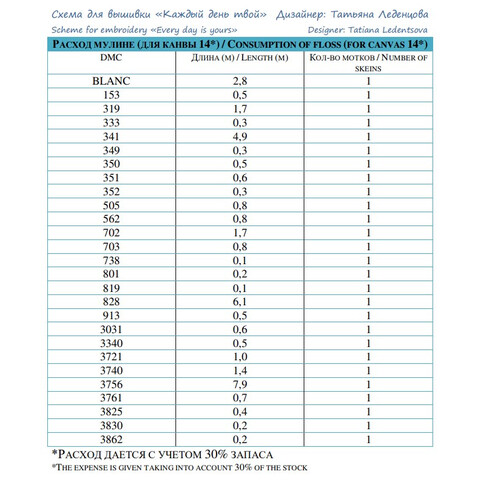 Набор ниток мулине к схеме "Каждый день твой" Внимание! схема в состав набора не входит, схема приобретается отдельно у автора схемы