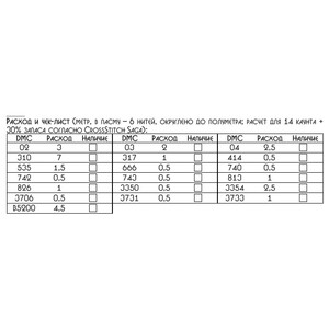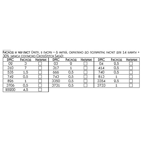 • Количество в соответствии с расходом: В наборе представлено необходимое количество нитей каждого цвета, рассчитанное на основе рекомендаций автора схемы.