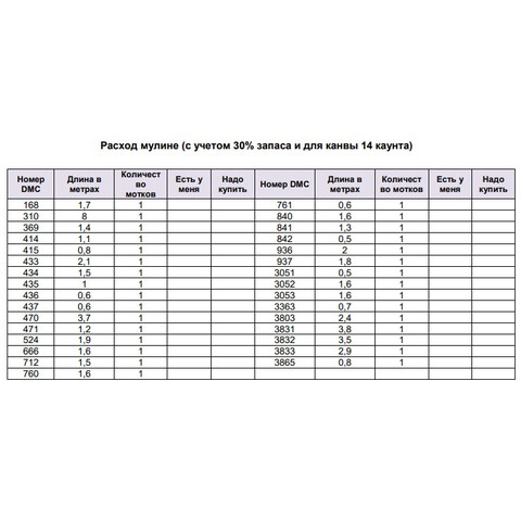 • Экономия времени: Вам не нужно тратить время на поиск и подбор нужных оттенков мулине.