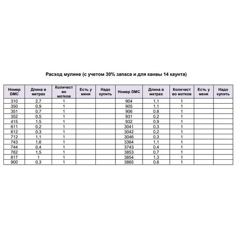• Экономия времени: Вам не нужно тратить время на поиск и подбор нужных оттенков мулине.