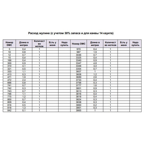 • Экономия времени: Вам не нужно тратить время на поиск и подбор нужных оттенков мулине.