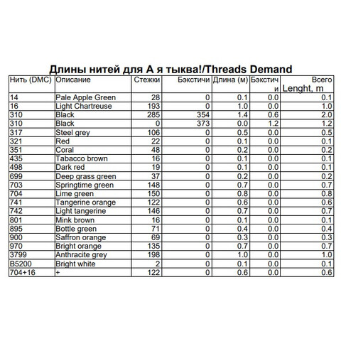 Набор ниток мулине к схеме "А я тыква!" Внимание! схема в состав набора не входит, схема приобретается отдельно у автора схемы