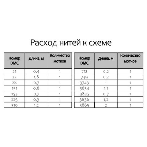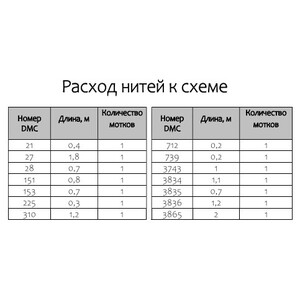 • Количество в соответствии с расходом: В наборе представлено необходимое количество нитей каждого цвета, рассчитанное на основе рекомендаций автора схемы.