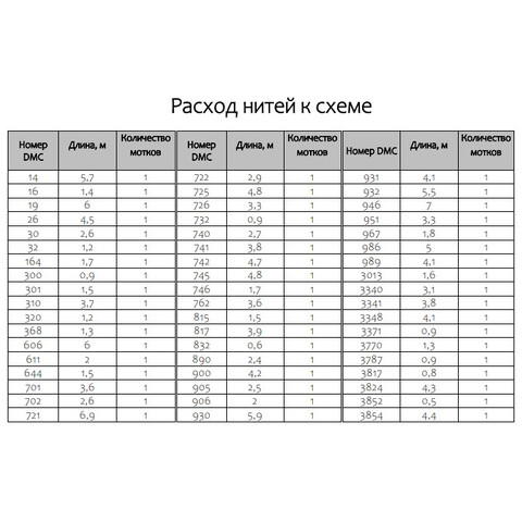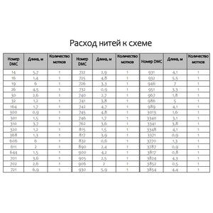 • Количество в соответствии с расходом: В наборе представлено необходимое количество нитей каждого цвета, рассчитанное на основе рекомендаций автора схемы.