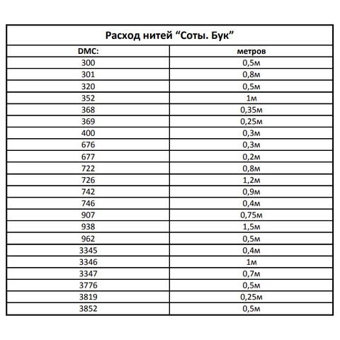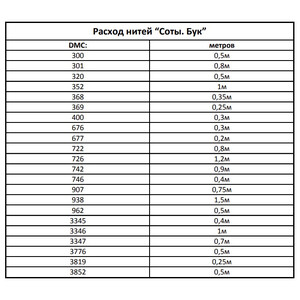 • Количество в соответствии с расходом: В наборе представлено необходимое количество нитей каждого цвета, рассчитанное на основе рекомендаций автора схемы.