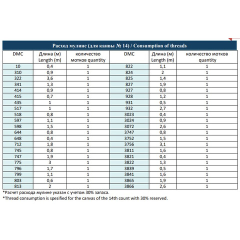 • Количество в соответствии с расходом: В наборе представлено необходимое количество нитей каждого цвета, рассчитанное на основе рекомендаций автора схемы.
