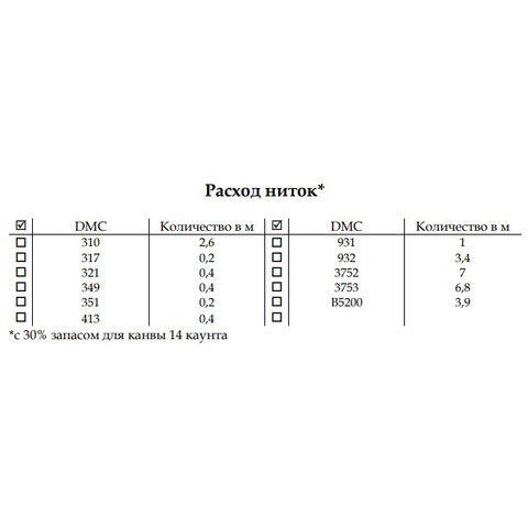 • Количество в соответствии с расходом: В наборе представлено необходимое количество нитей каждого цвета, рассчитанное на основе рекомендаций автора схемы.