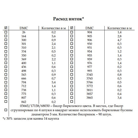 • Удобство в работе: Оптимальная длина нитей и точное количество каждого цвета сделают процесс вышивки максимально комфортным.