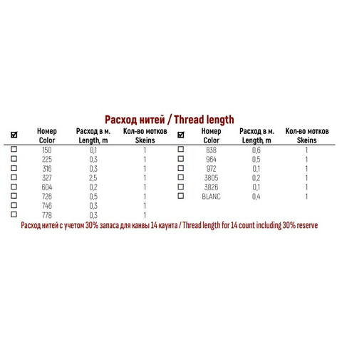 • Количество в соответствии с расходом: В наборе представлено необходимое количество нитей каждого цвета, рассчитанное на основе рекомендаций автора схемы.