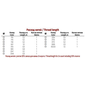 • Количество в соответствии с расходом: В наборе представлено необходимое количество нитей каждого цвета, рассчитанное на основе рекомендаций автора схемы.