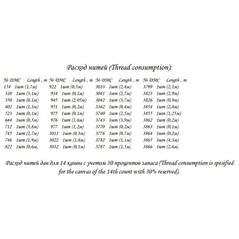 • Количество в соответствии с расходом: В наборе представлено необходимое количество нитей каждого цвета, рассчитанное на основе рекомендаций автора схемы.