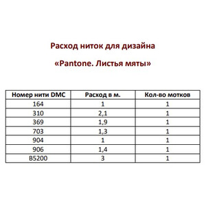 Набор ниток мулине к схеме "Pantone. Листья мяты" Внимание! схема в состав набора не входит, схема приобретается отдельно у автора схемы
