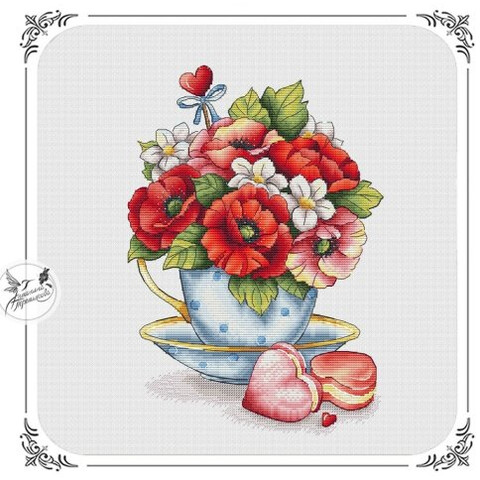Набор ниток мулине к схеме "Чашка с маками" Внимание! схема в состав набора не входит, схема приобретается отдельно у автора схемы