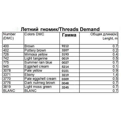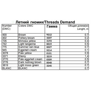 Набор ниток мулине к схеме "Летний гномик" Внимание! схема в состав набора не входит, схема приобретается отдельно у автора схемы