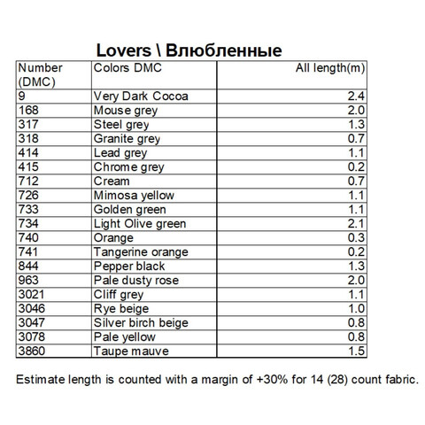 Набор ниток мулине к схеме "Влюблённые" Внимание! схема в состав набора не входит, схема приобретается отдельно у автора схемы