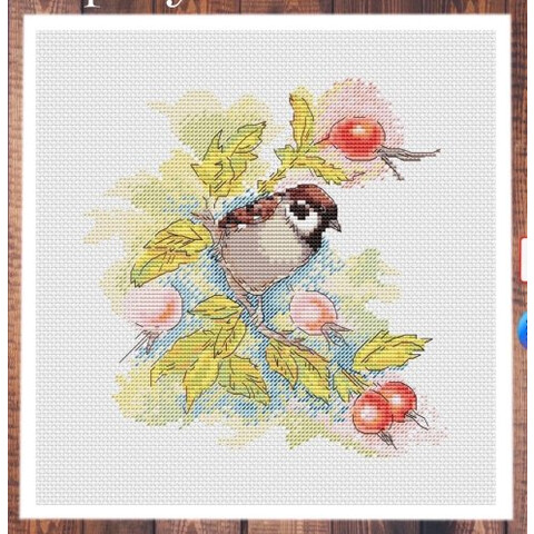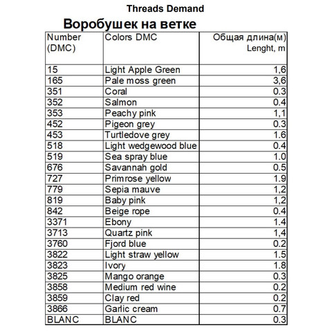 Набор ниток мулине к схеме "Воробушек на ветке" Внимание! схема в состав набора не входит, схема приобретается отдельно у автора схемы