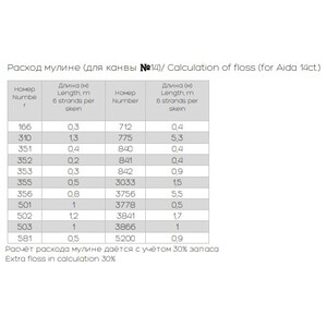 • Количество в соответствии с расходом: В наборе представлено необходимое количество нитей каждого цвета, рассчитанное на основе рекомендаций автора схемы.