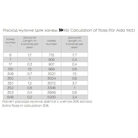 • Количество в соответствии с расходом: В наборе представлено необходимое количество нитей каждого цвета, рассчитанное на основе рекомендаций автора схемы.