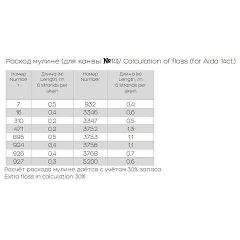 • Количество в соответствии с расходом: В наборе представлено необходимое количество нитей каждого цвета, рассчитанное на основе рекомендаций автора схемы.