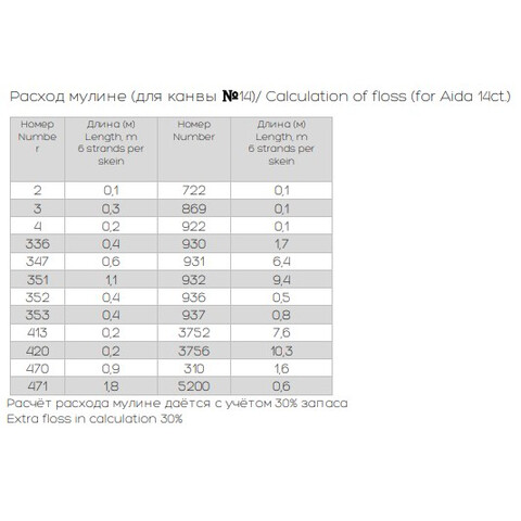 • Количество в соответствии с расходом: В наборе представлено необходимое количество нитей каждого цвета, рассчитанное на основе рекомендаций автора схемы.
