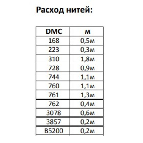 • Количество в соответствии с расходом: В наборе представлено необходимое количество нитей каждого цвета, рассчитанное на основе рекомендаций автора схемы.