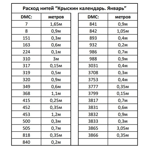 Набор ниток мулине к схеме "Крыскин календарь. Январь" Внимание! схема в состав набора не входит, схема приобретается отдельно у автора схемы