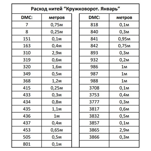 Набор ниток мулине к схеме "Кружковорот. Январь" Внимание! схема в состав набора не входит, схема приобретается отдельно у автора схемы