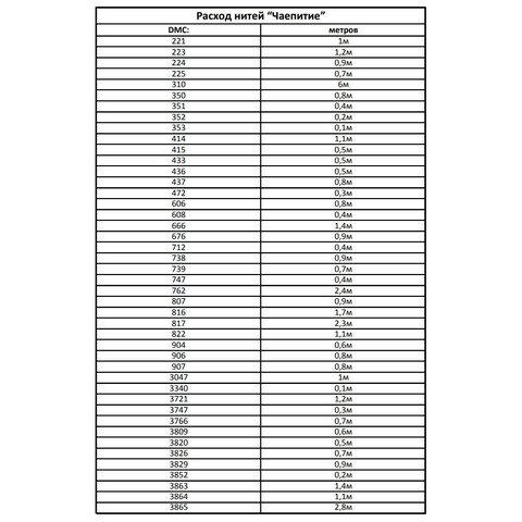 • Количество в соответствии с расходом: В наборе представлено необходимое количество нитей каждого цвета, рассчитанное на основе рекомендаций автора схемы.