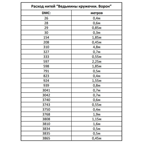 Набор ниток мулине к схеме "Ведьмины кружечки. Ворон" Внимание! схема в состав набора не входит, схема приобретается отдельно у автора схемы