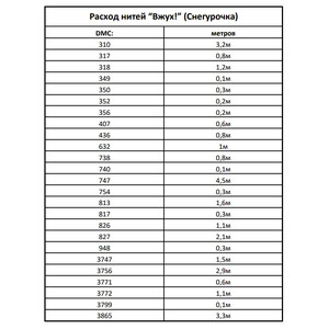 • Количество в соответствии с расходом: В наборе представлено необходимое количество нитей каждого цвета, рассчитанное на основе рекомендаций автора схемы.