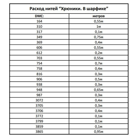 • Количество в соответствии с расходом: В наборе представлено необходимое количество нитей каждого цвета, рассчитанное на основе рекомендаций автора схемы.