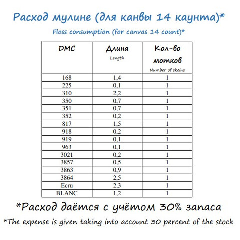 • Количество в соответствии с расходом: В наборе представлено необходимое количество нитей каждого цвета, рассчитанное на основе рекомендаций автора схемы.