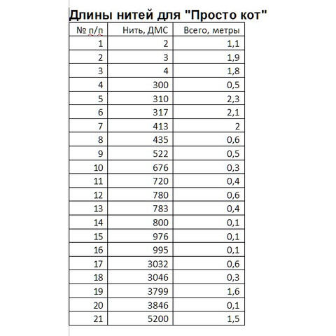 Набор ниток мулине к схеме "Просто кот" Внимание! схема в состав набора не входит, схема приобретается отдельно у автора схемы